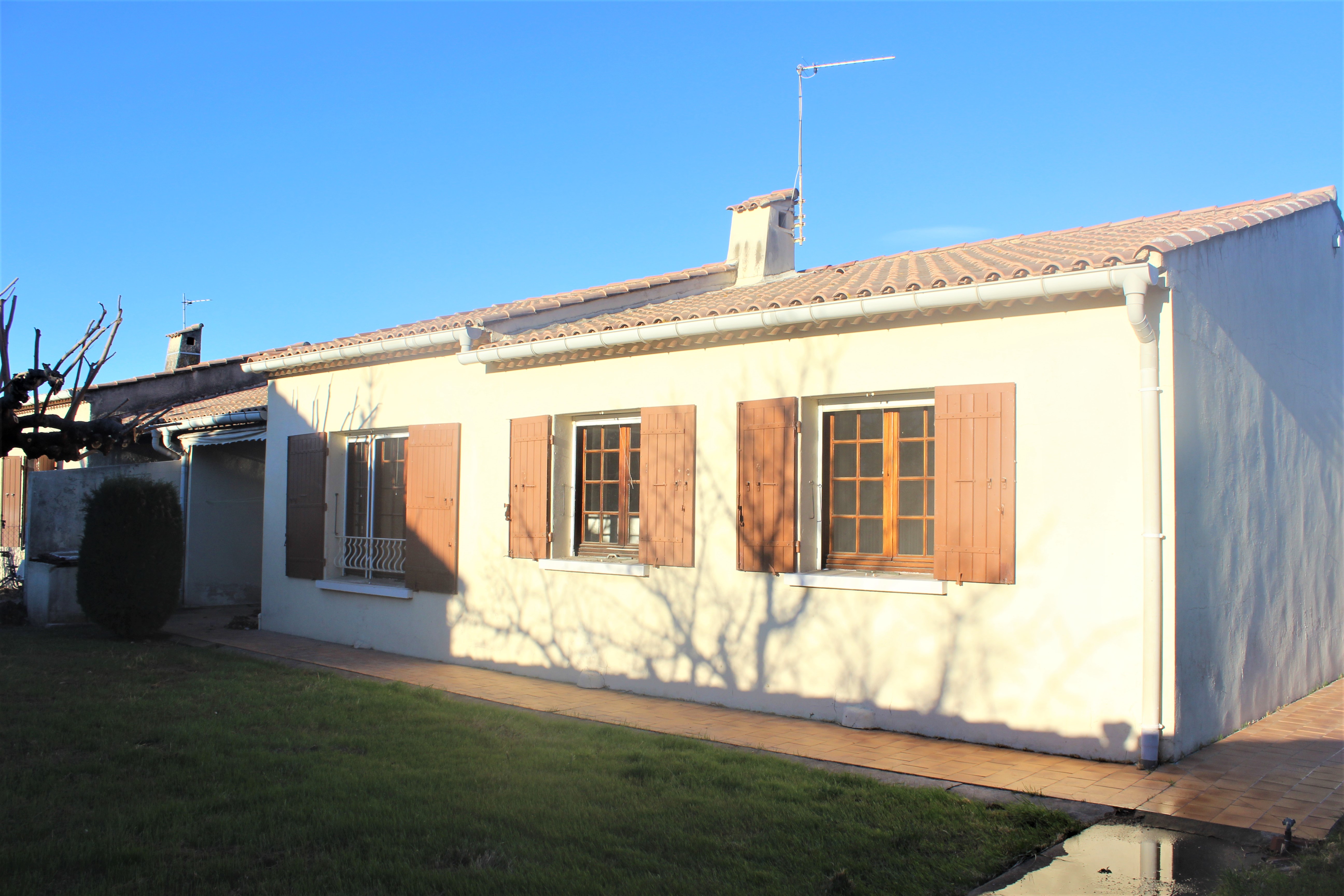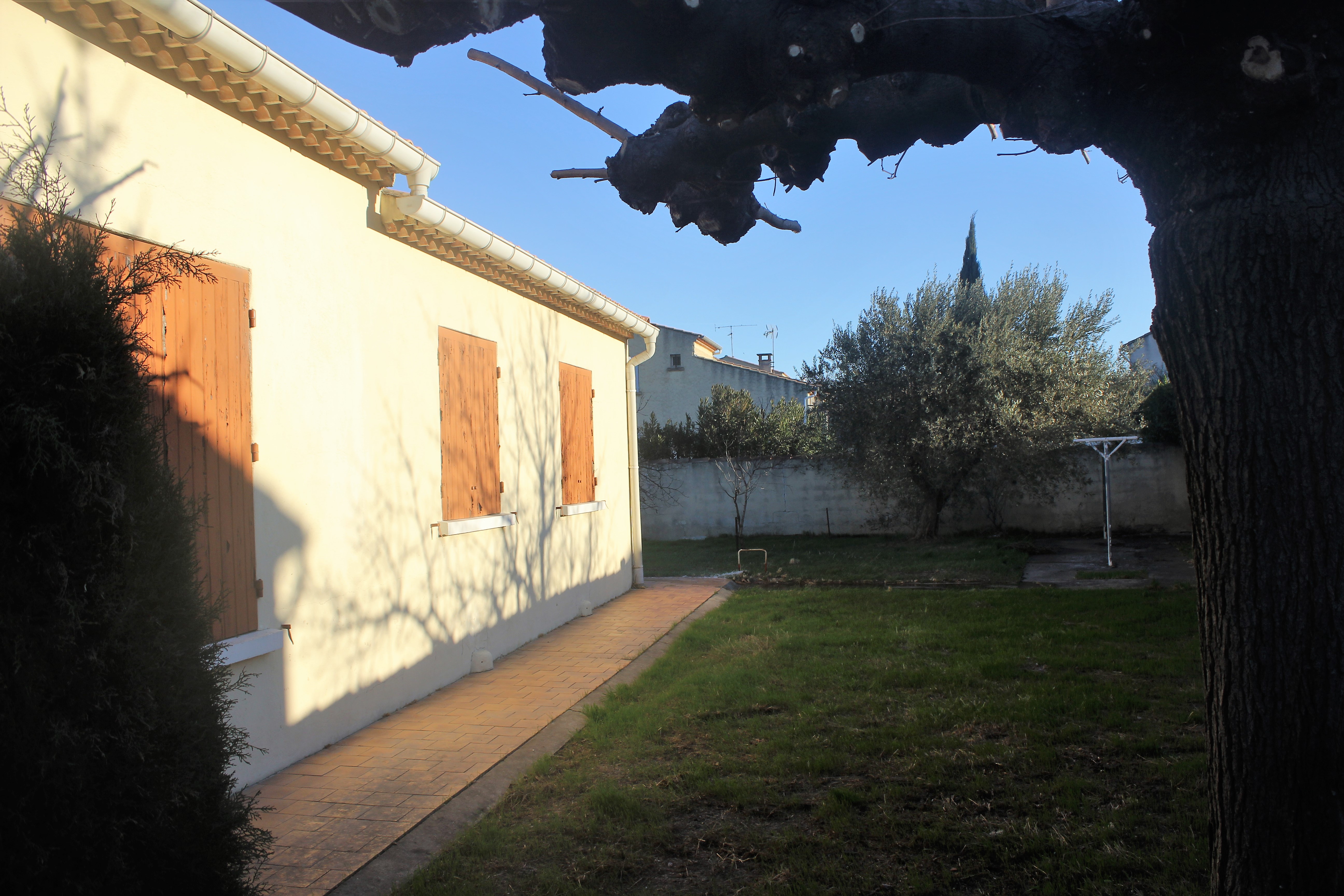 A ROGNONAS prés d' AVIGNON Très belle maison de plain-pied de 84 mètres carrés habitables, 2 chambres, cuisine équipée, SdB - douche / Wc / Buanderie / Nombreux rangements, grande terrasse , Annexe composée d'un Garage - Possibilité d'y aménager un appartement ou des locaux pour activité professionnelle (idéal artisan) . La maison est en bon état !