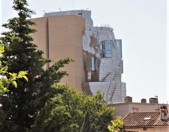 - L’escalier extérieur arrive sur une grande terrasse couverte avec une très belle vue sur la Tour Luma, où il fera bon prendre ces repas