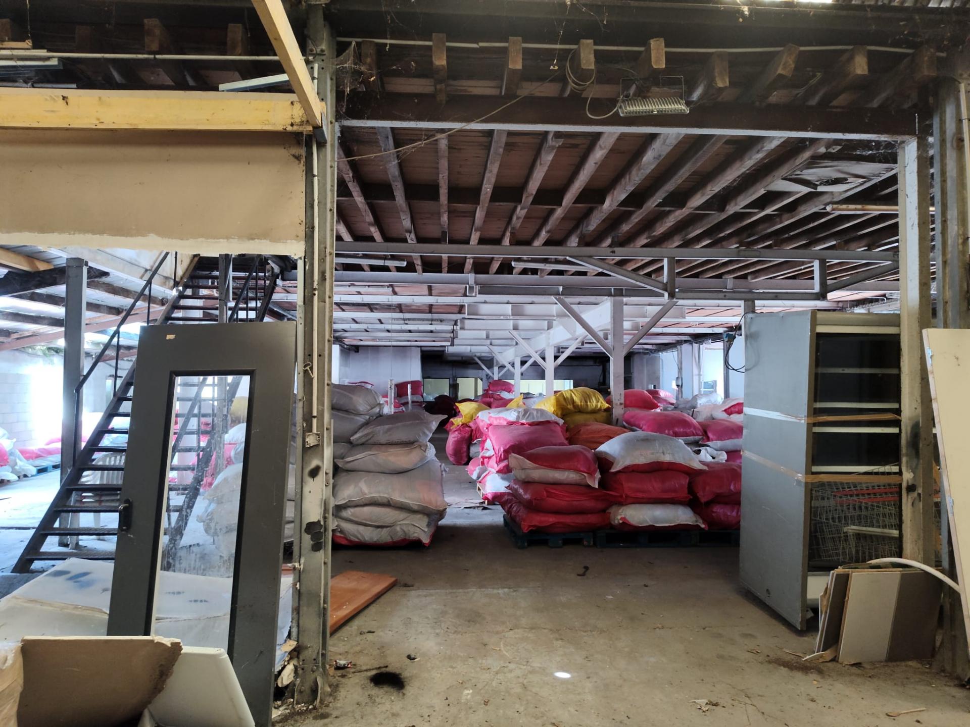 Rez-de-chaussée : entrepôt, réserve, bureau, salle d’exposition, sanitaires, atelier