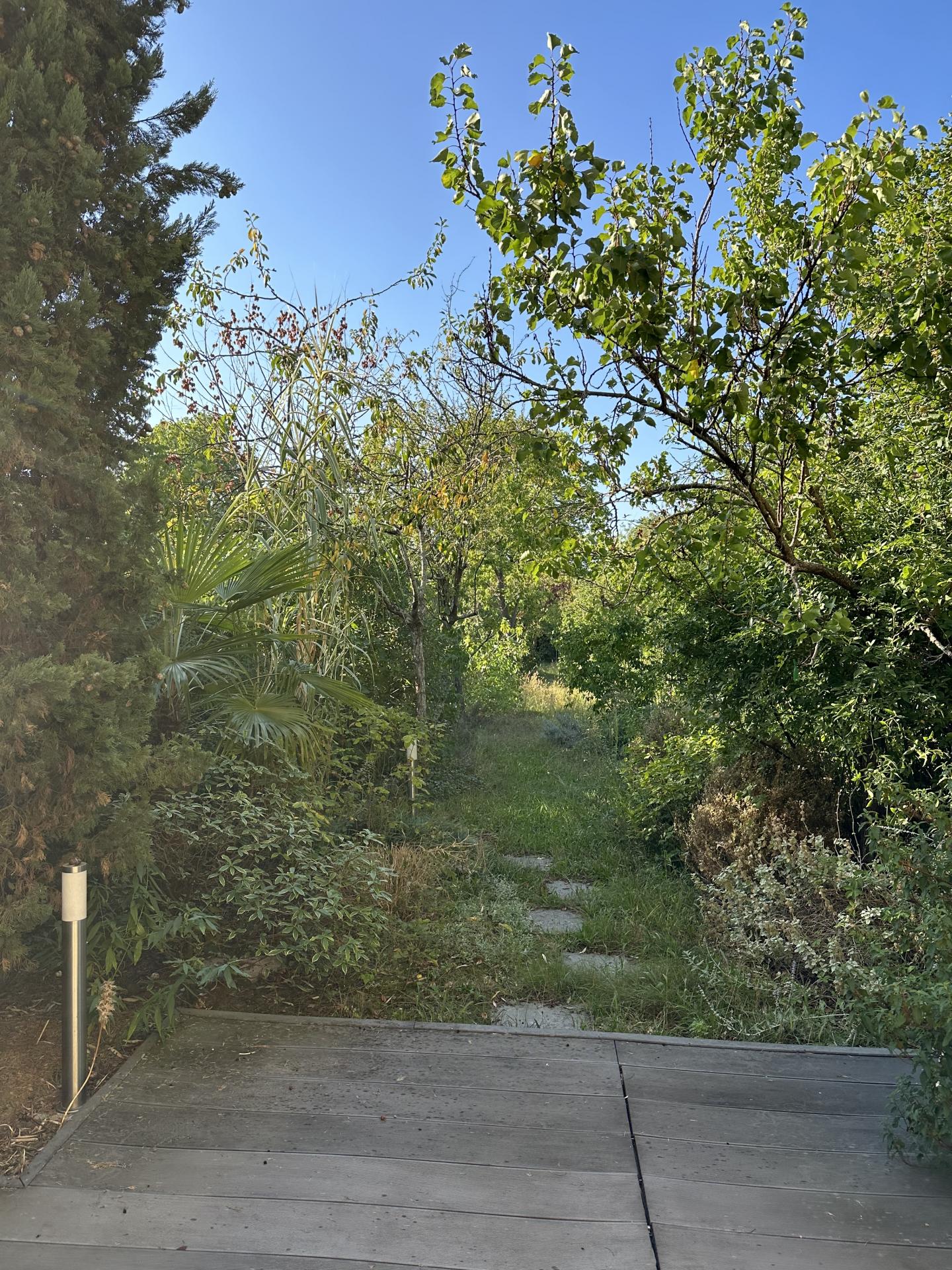 Enfin, un des nombreux autres atouts de cette propriété est que son vaste jardin, planté d’ arbres fruitiers et d’essences diverses, offre la possibilité de concevoir un agrandissement des surfaces habitables actuelles… (une des deux parcelles réunies, de 200 m2, est à bâtir)