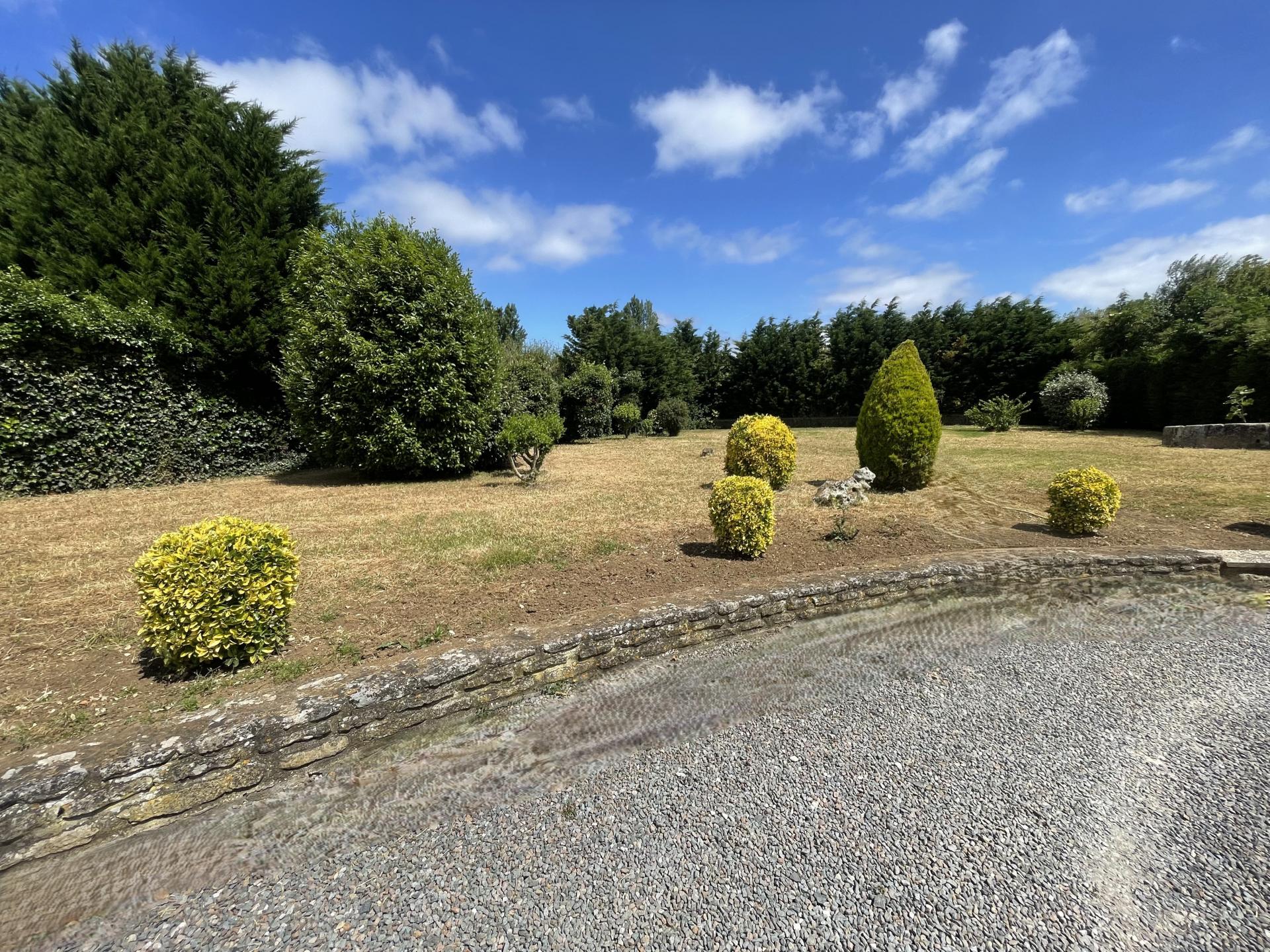 - Grande cour empierrée reliée directement au jardin, donnant accès à l'arrière de la maison, à un auvent, au garage et à la dépendance de 28 m²