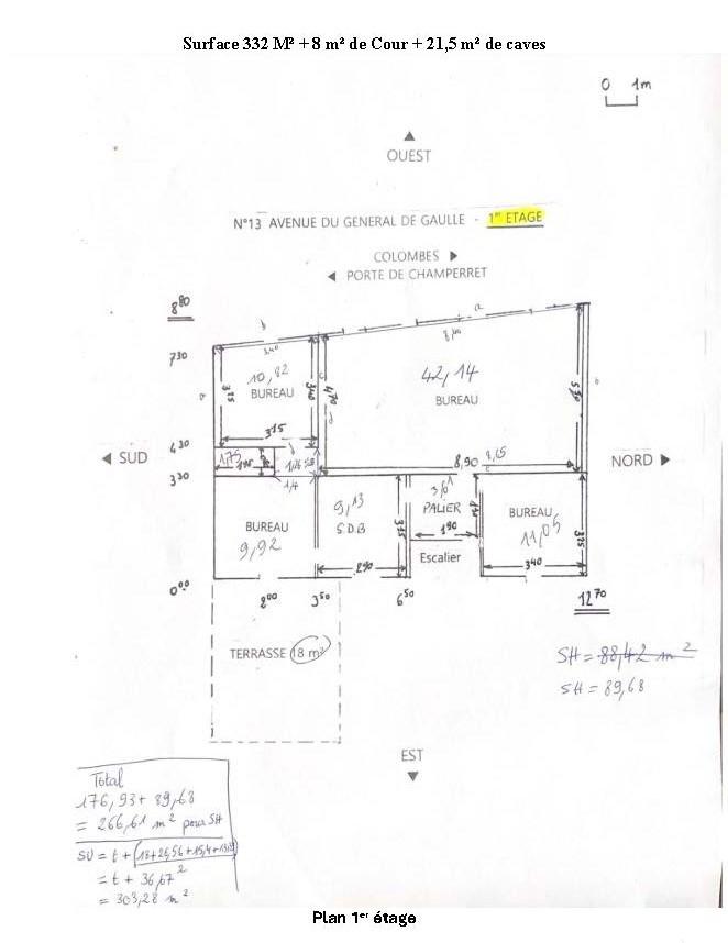 Surface de 237 m² affectée actuellement aux surfaces commerciales + 8 m² de Cour + 21,50 m² de caves