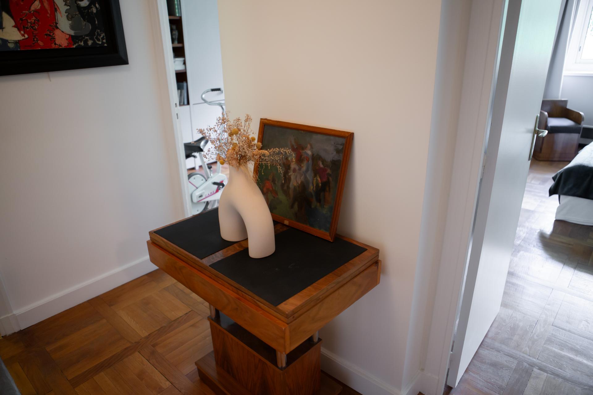 Au deuxième étage d’une résidence de standing au calme absolu, avec ascenseur et gardien, élégant appartement lumineux de 114 m² (109,58 m² loi Carrez + 14,26 m² de balcon filant), bénéficiant d’une vue dégagée sur un beau jardin verdoyant. DPE D.