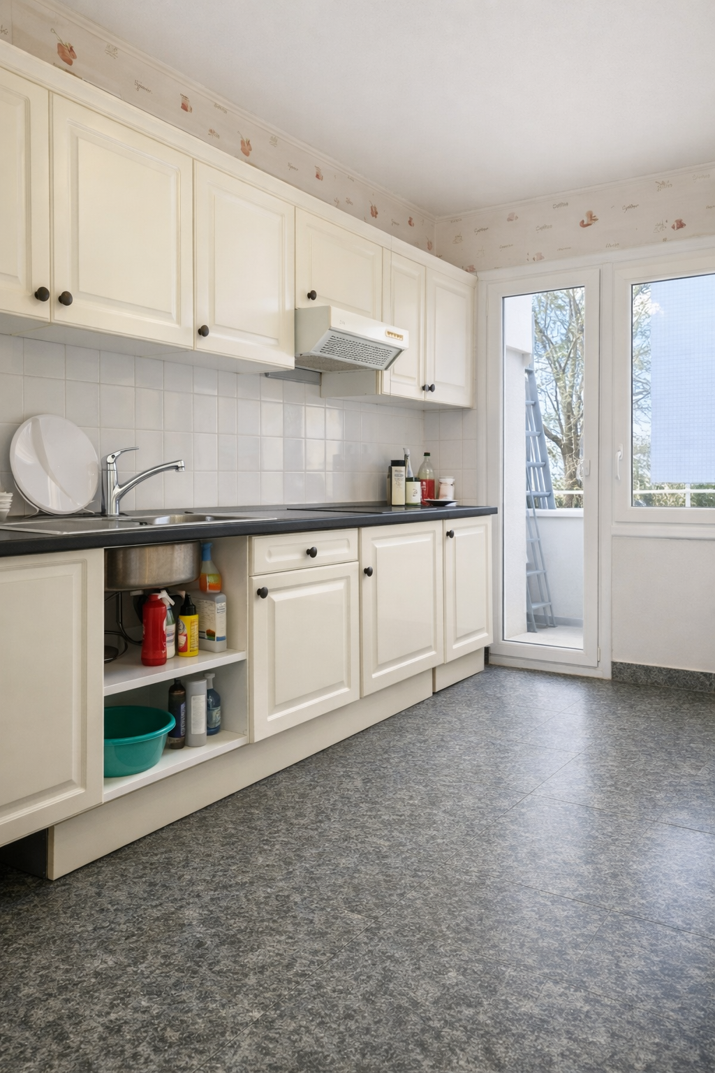 Lumineux – Fonctionnel – Fort potentiel L’appartement se compose de : une entrée, un séjour lumineux ouvrant sur un balcon exposé plein Sud, une cuisine indépendante avec loggia, trois chambres, une salle de bains, un WC séparé, un espace de rangement / local technique.