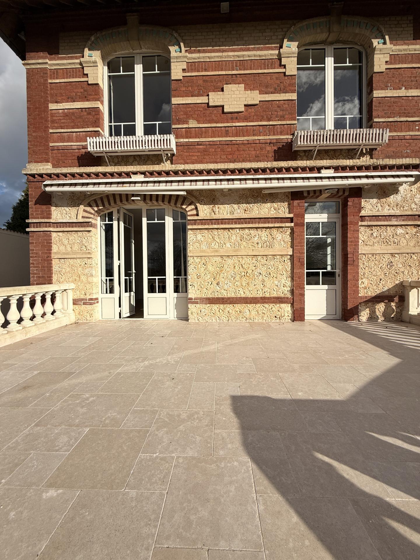 À Bonneville-sur-Touques, à quelques minutes de Deauville, magnifique maison de maître en briques et pierres, entièrement rénovée et vendue meublée et équipée. Traversante et exposée plein Sud, elle bénéficie d’une luminosité exceptionnelle et d’un charme préservé.