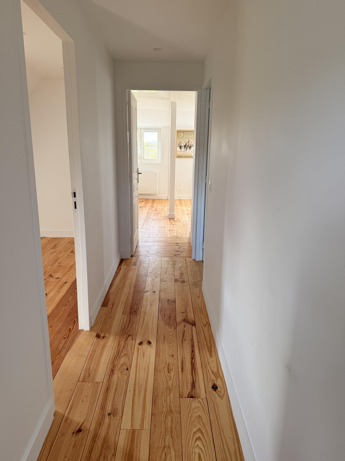 Le deuxième étage comprend une grande chambre dortoir de 20 à 25 m² avec salle de douche et WC, une très belle chambre avec salle de bain et WC, ainsi qu’une troisième pièce pouvant servir de petite chambre, de bureau ou de dressing.