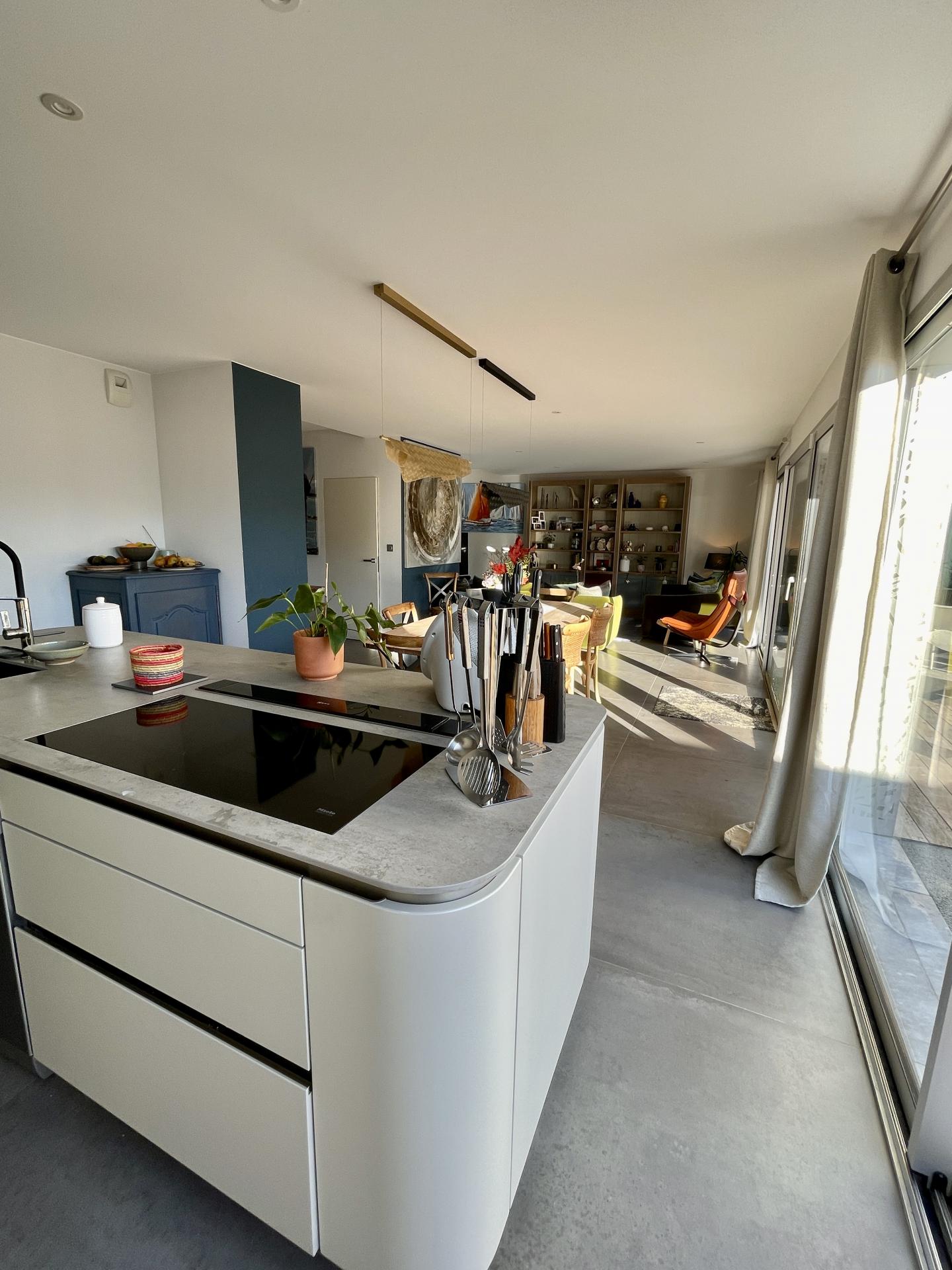 Dès l’entrée, un grand dressing sur mesure souligne l’attention portée au confort quotidien et à l’optimisation des espaces. La grande pièce de vie, généreuse et lumineuse, s’ouvre harmonieusement sur les extérieurs. La cuisine italienne design haut de gamme, entièrement aménagée et équipée, s’inscrit dans une esthétique contemporaine aux finitions soignées.
