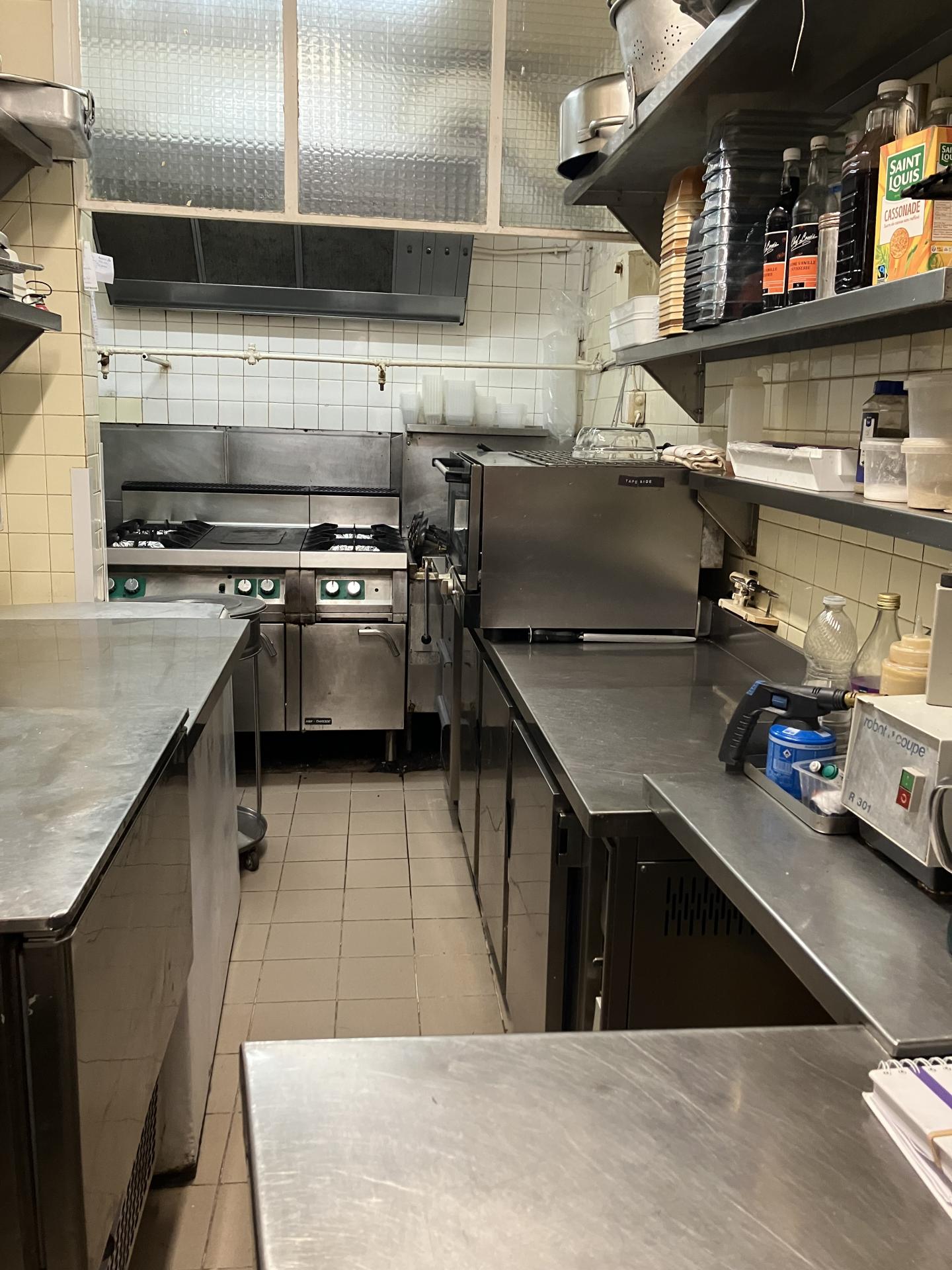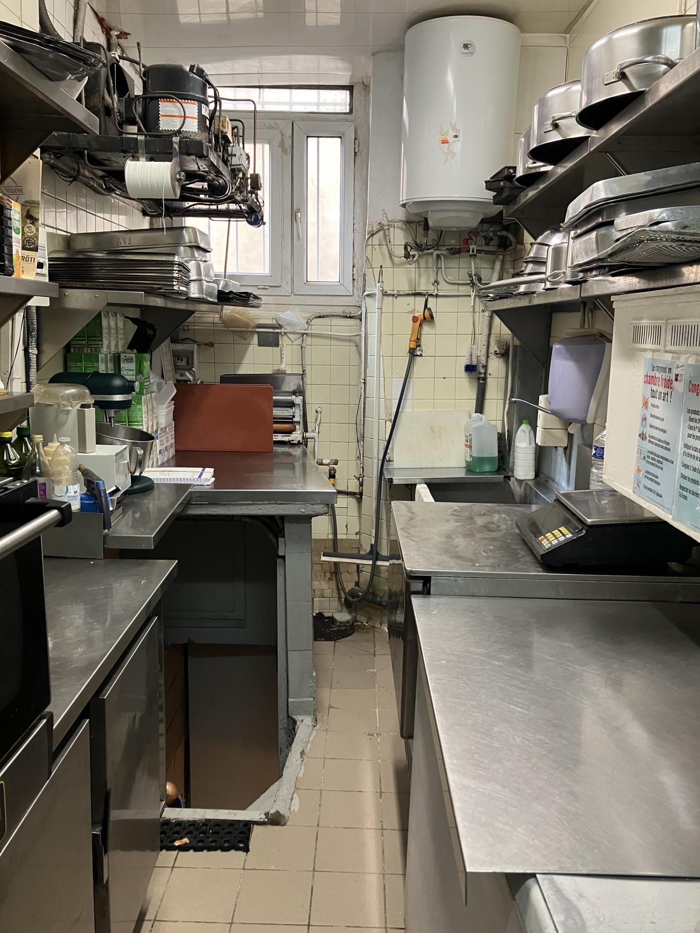Paris (75015) : A céder un fonds de commerce de restauration rapide - charcuterie - traiteur tenue depuis de nombreuses années par le même couple. Affaire située dans un secteur mêlant bureaux, hôpital, écoles et résidentiel, avec une très forte clientèle de personnel de bureau (hôpital, écoles, etc). Le local comprend : - Une boutique avec vitrine sur rue. - Une réserve et une cuisine à l'arrière occupant toute la profondeur du bâtiment. - Une descente directe vers deux caves situées sous la boutique, communicantes entre elles, parfaites pour le stockage.