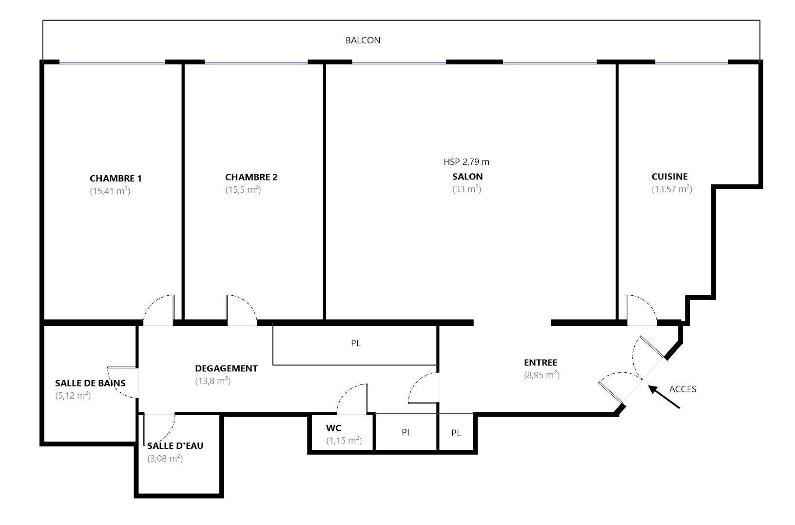 - Un couloir/dressing desservant l’ensemble des espaces