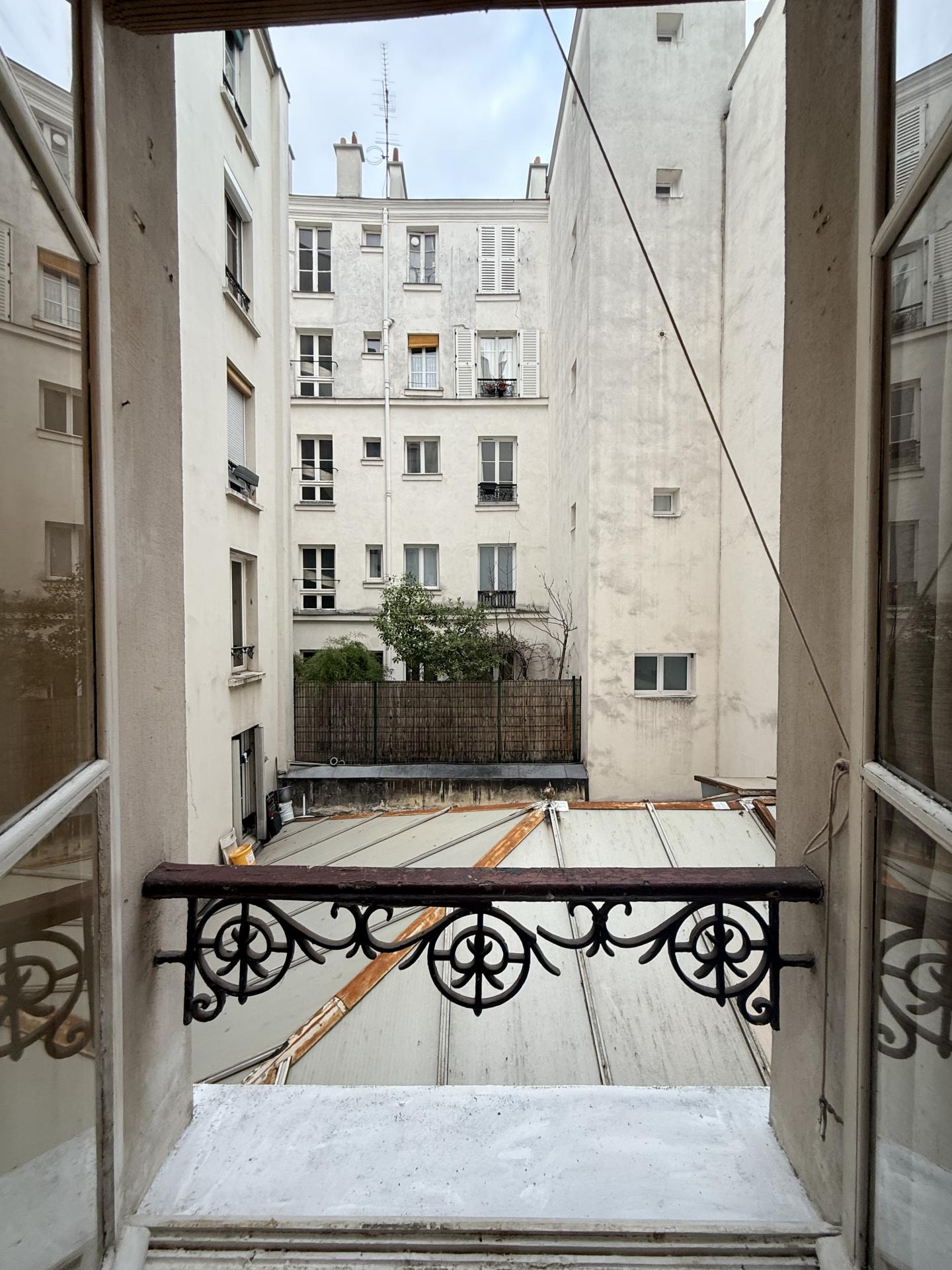 Studio au calme de 14,40 m², situé passage Lathuille (75018), à seulement 110 mètres du métro Place de Clichy, dans un immeuble de 1890, au 2ᵉ étage sans ascenseur.