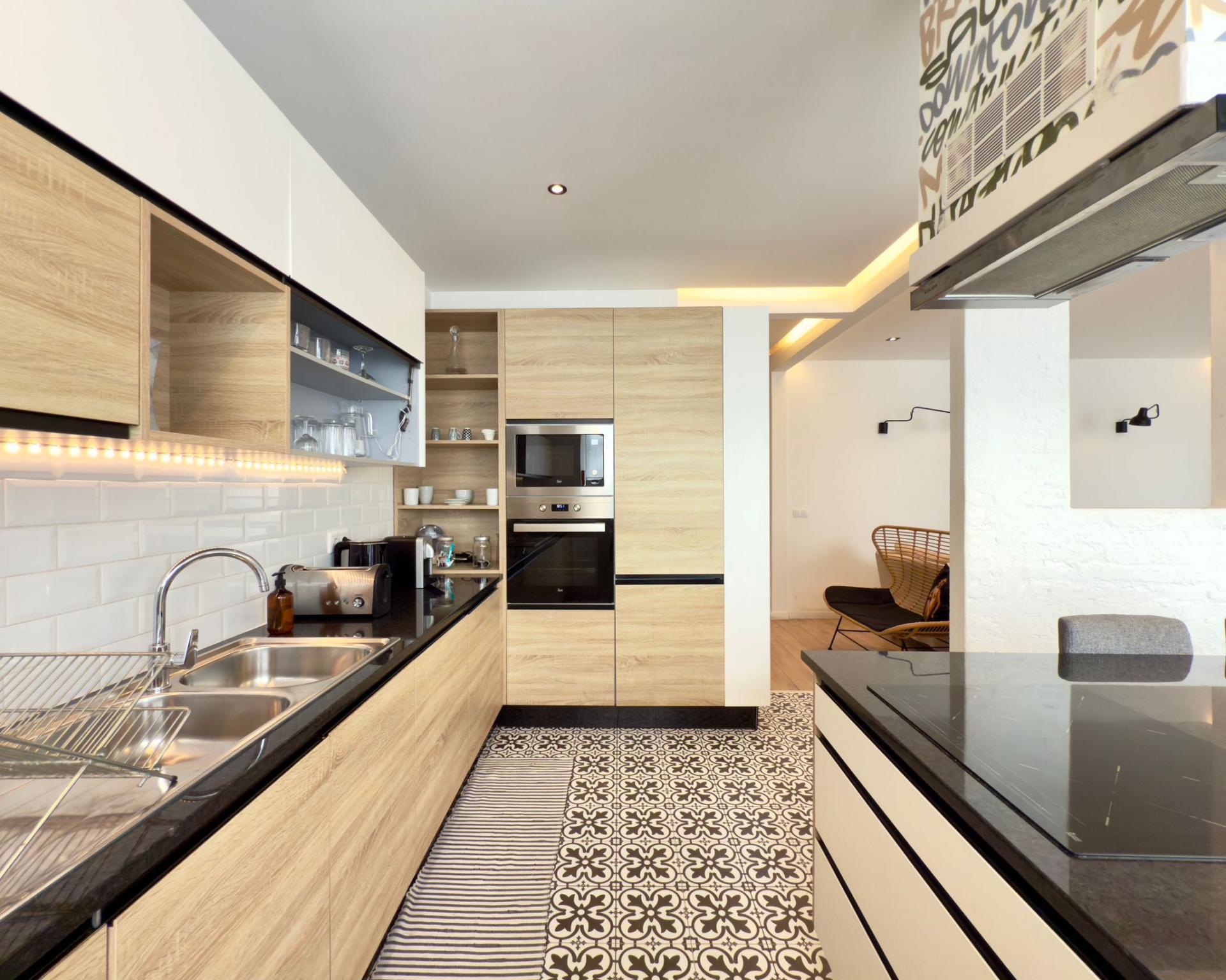 Dès l'entrée, vous découvrez une spacieuse pièce de vie baignée de lumière, ouverte sur une cuisine moderne entièrement équipée, dans un esprit loft très contemporain. L'espace nuit, bien distinct, comprend deux grandes chambres, dont une suite parentale avec salle de bains privative ouverte sur la chambre, ainsi qu'une seconde chambre et une salle de bains indépendante.
