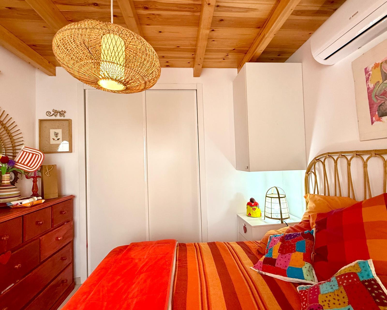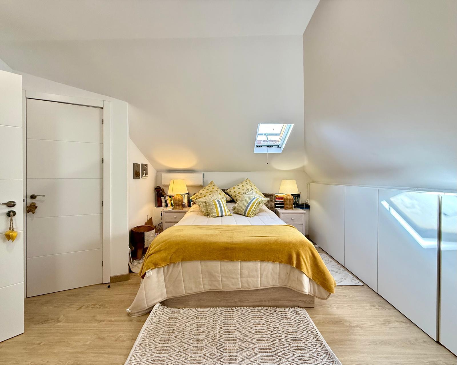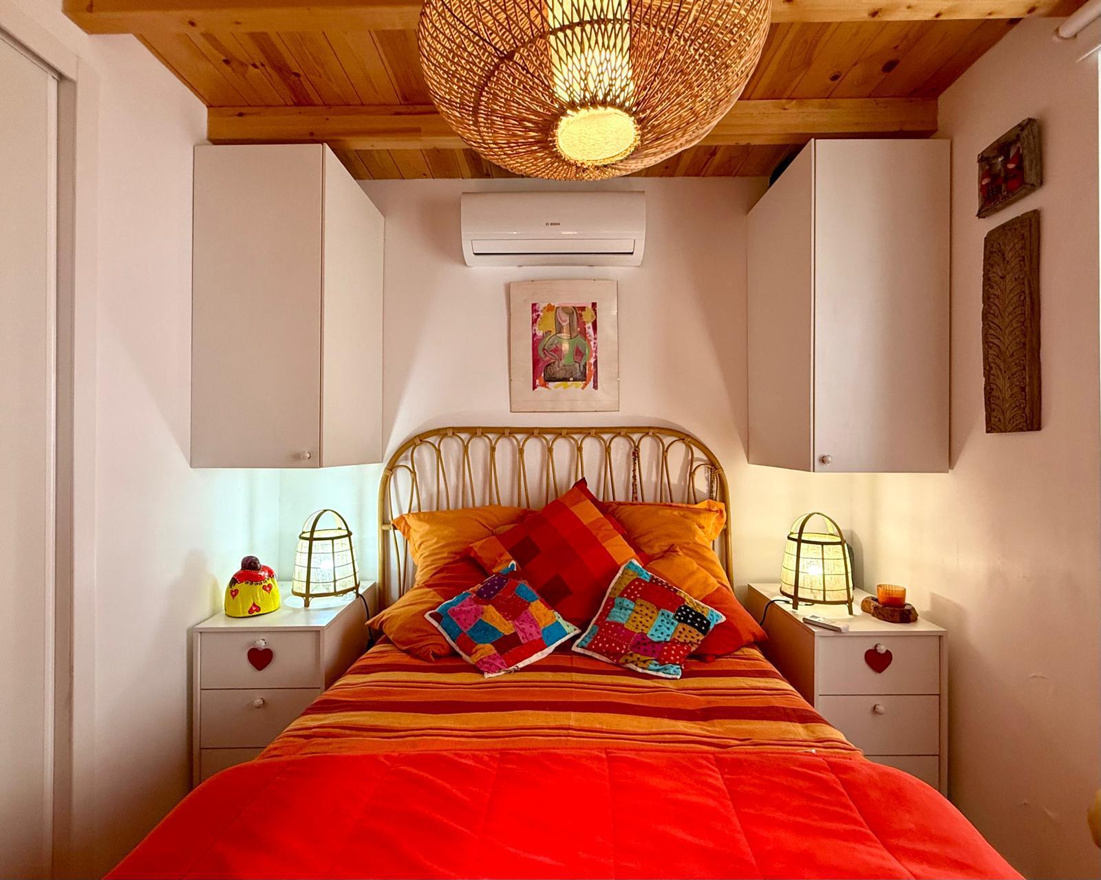 A l'étage, une mezzanine fermée accueille la seconde chambre sous les toits avec sa propre salle de bains. Entre confort moderne (climatisation, double vitrage) et charme de l'architecture locale, cette maison se distingue par sa façade élégante, ses volumes optimisés et son patio intimiste.