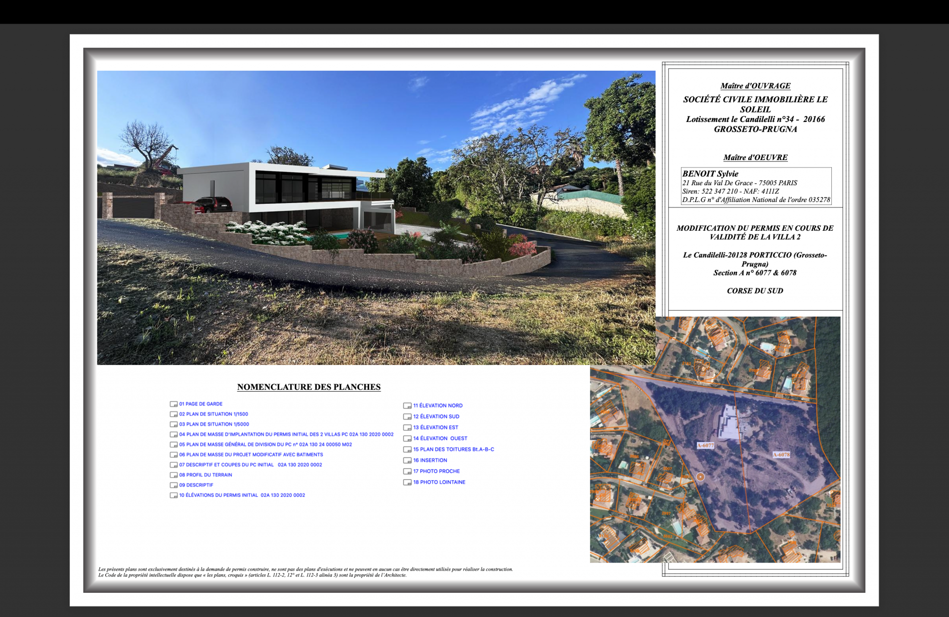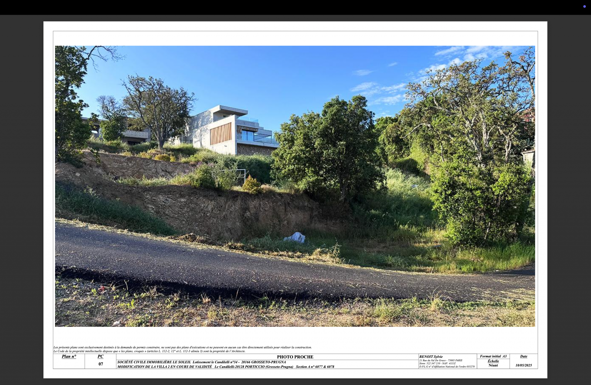 Dans un environnement résidentiel calme et recherché, à proximité immédiate des plages et du centre de Porticcio, vente d’un terrain d'environ 1000 m2 avec permis de construire purgé de tout recours pour la réalisation d’une villa contemporaine de 220 m2, avec accès et réseaux à proximité immédiate