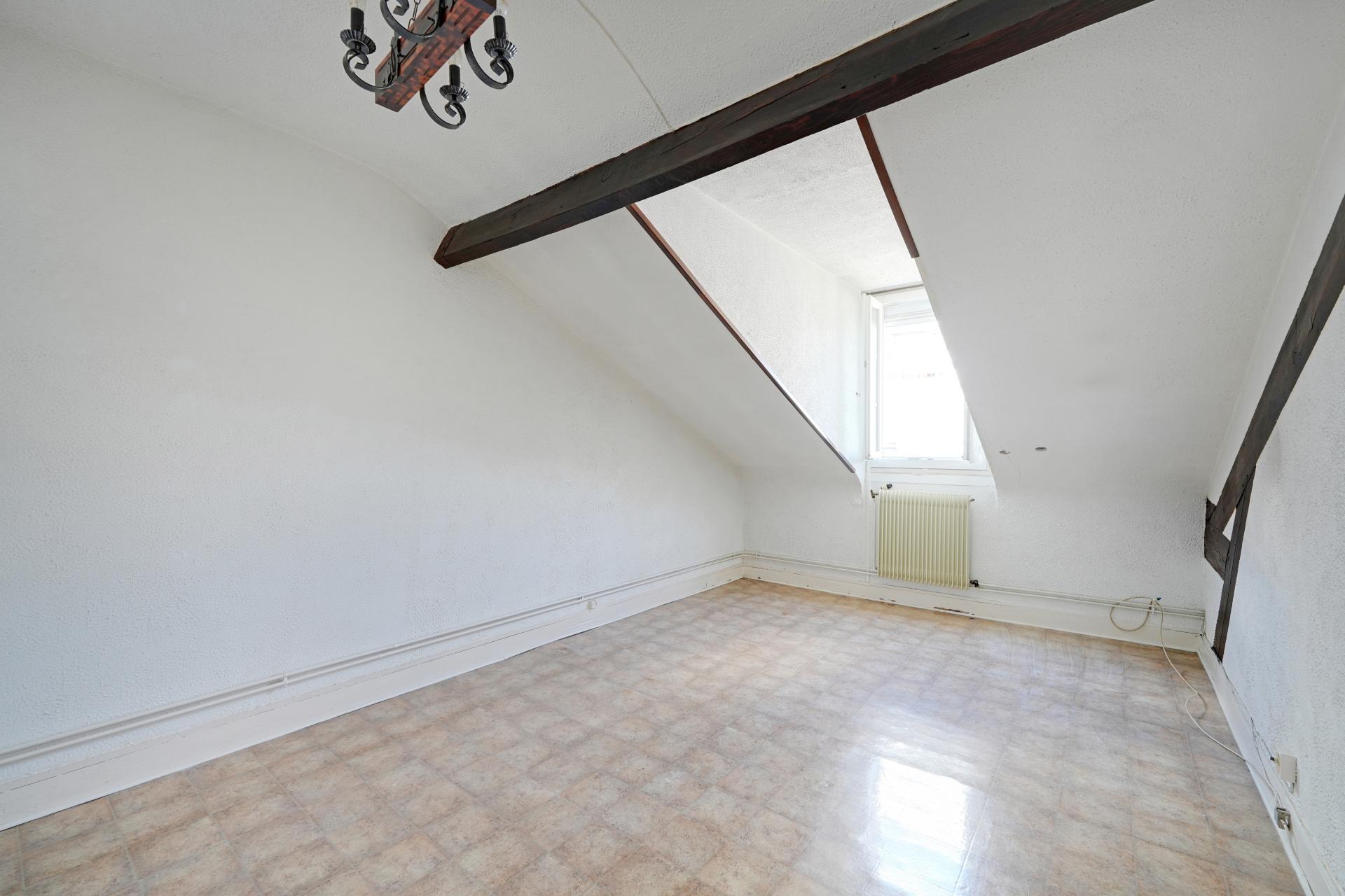 Au sein d’une voie piétonne semi privée, au quatrième et dernier étage d’un petit immeuble ancien aux parties communes bien entretenues, appartement sous les toits à rénover entièrement de quatre pièces de 64,14m2 loi carrez (78m2 au sol). Ce bien comprend une entrée, une cuisine séparée, un agréable séjour, trois chambres, deux salles d’eau, deux WC.
