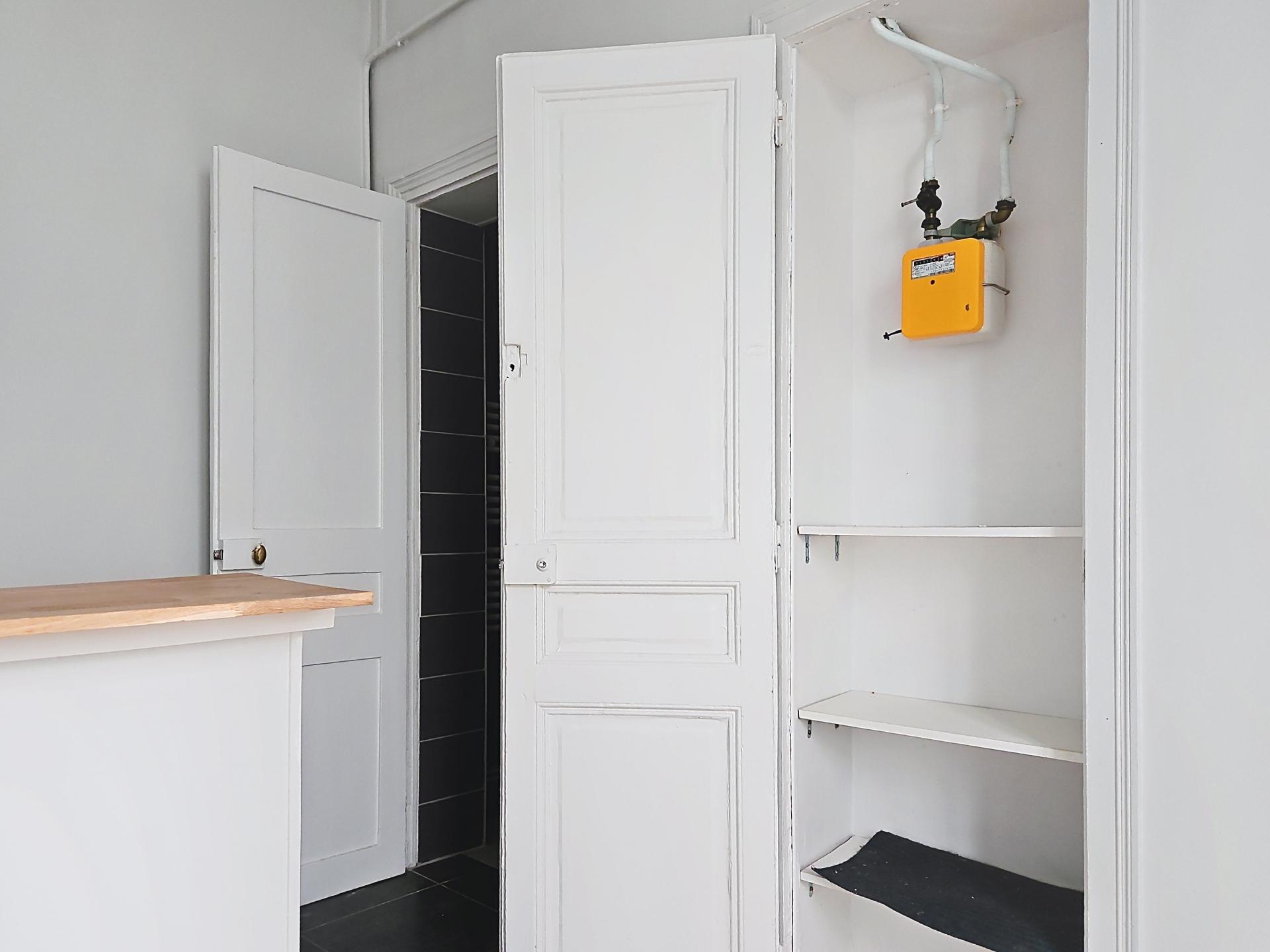 Au calme d’une cour intérieure, derrière une façade en pierres de taille typiquement parisienne, se niche ce deux-pièces de 25,6 m² situé rue du Général Guilhem, dans le 11ᵉ arrondissement de Paris. Entre la rue Saint-Maur et le square Gardette, l’appartement profite d’un environnement vivant, tout en restant à l’abri de l’animation de la ville.