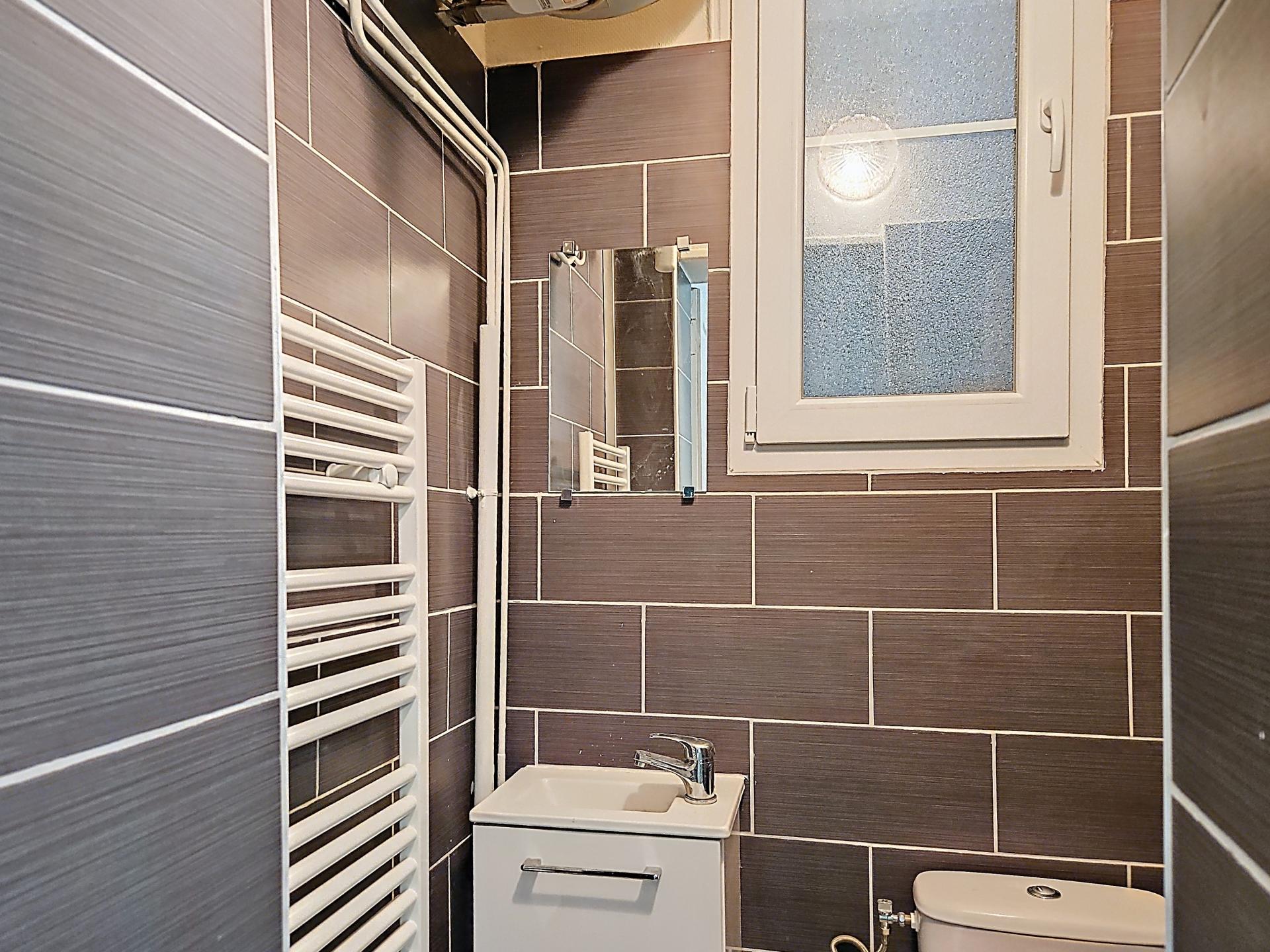 Dès l’entrée, on découvre une pièce de vie agréable d’environ 12 m², où la cuisine ouverte trouve naturellement sa place le long du mur, libérant l’espace pour un coin repas et un salon cosy. La circulation est fluide, les volumes bien proportionnés, ce qui permet d’organiser les lieux sans perdre un mètre carré. Dans le prolongement, la chambre, d’une surface similaire, s’ouvre elle aussi sur la cour, créant une atmosphère intime et reposante. La lumière s’y invite avec douceur, renforçant l’impression de cocon, loin du tumulte des grands axes. On s’y imagine facilement installer un grand lit, quelques rangements sur mesure et un espace bureau discret pour télétravailler. La salle d’eau, à l’esprit contemporain, propose une douche, un meuble vasque et des toilettes, le tout complété par un chauffage individuel électrique pour une gestion autonome de la consommation. L’ensemble forme un pied-à-terre ou un premier nid principal facile à vivre et à entretenir.