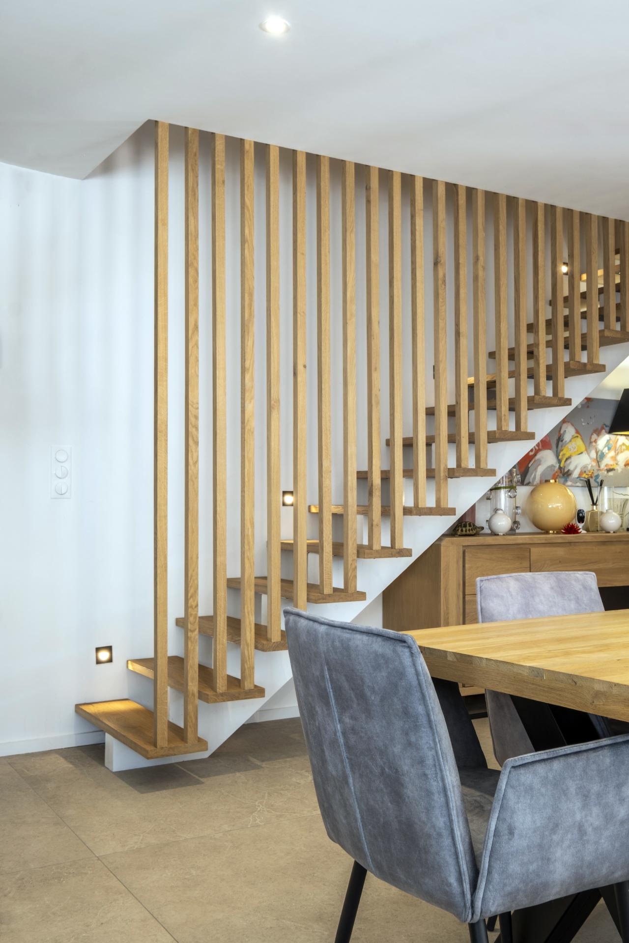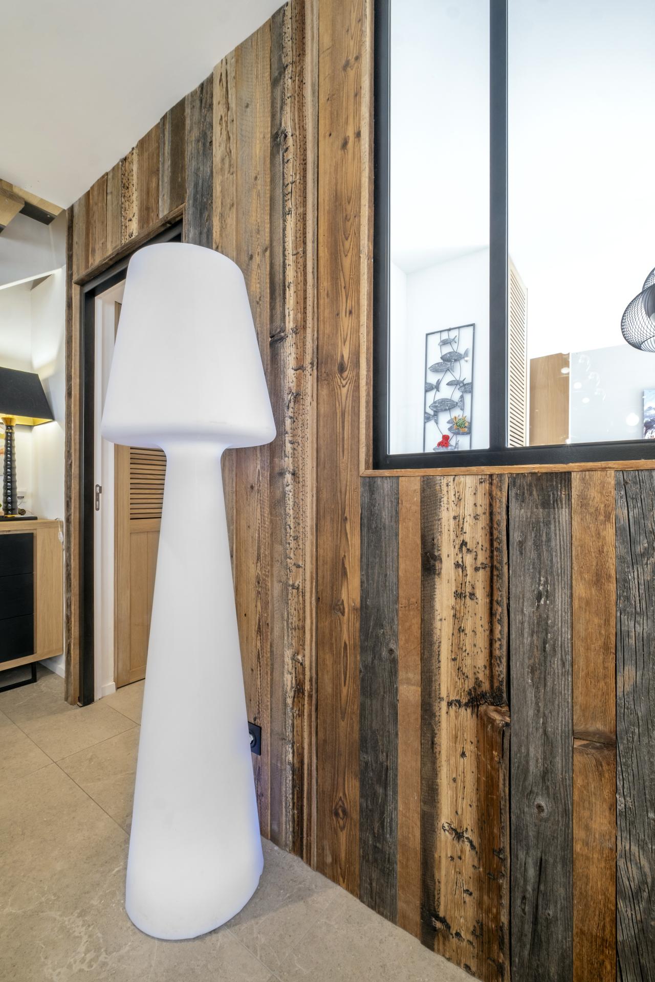 Dès le franchissement du seuil, la Villa Fleur de Sel révèle son caractère : volumes généreux (séjour 74m²), matériaux nobles soigneusement sélectionnés - pierre de caractère, bois chaleureux, finitions irréprochables - créent une atmosphère enveloppante, entre élégance discrète et authenticité rhétaise. La cheminée trône en pièce maîtresse du séjour et incarne à elle seule l'âme de cette maison : un foyer autour duquel la vie s'organise naturellement, au retour des plages désertes de l'automne ou des balades à vélo sous le vent de l'Atlantique.