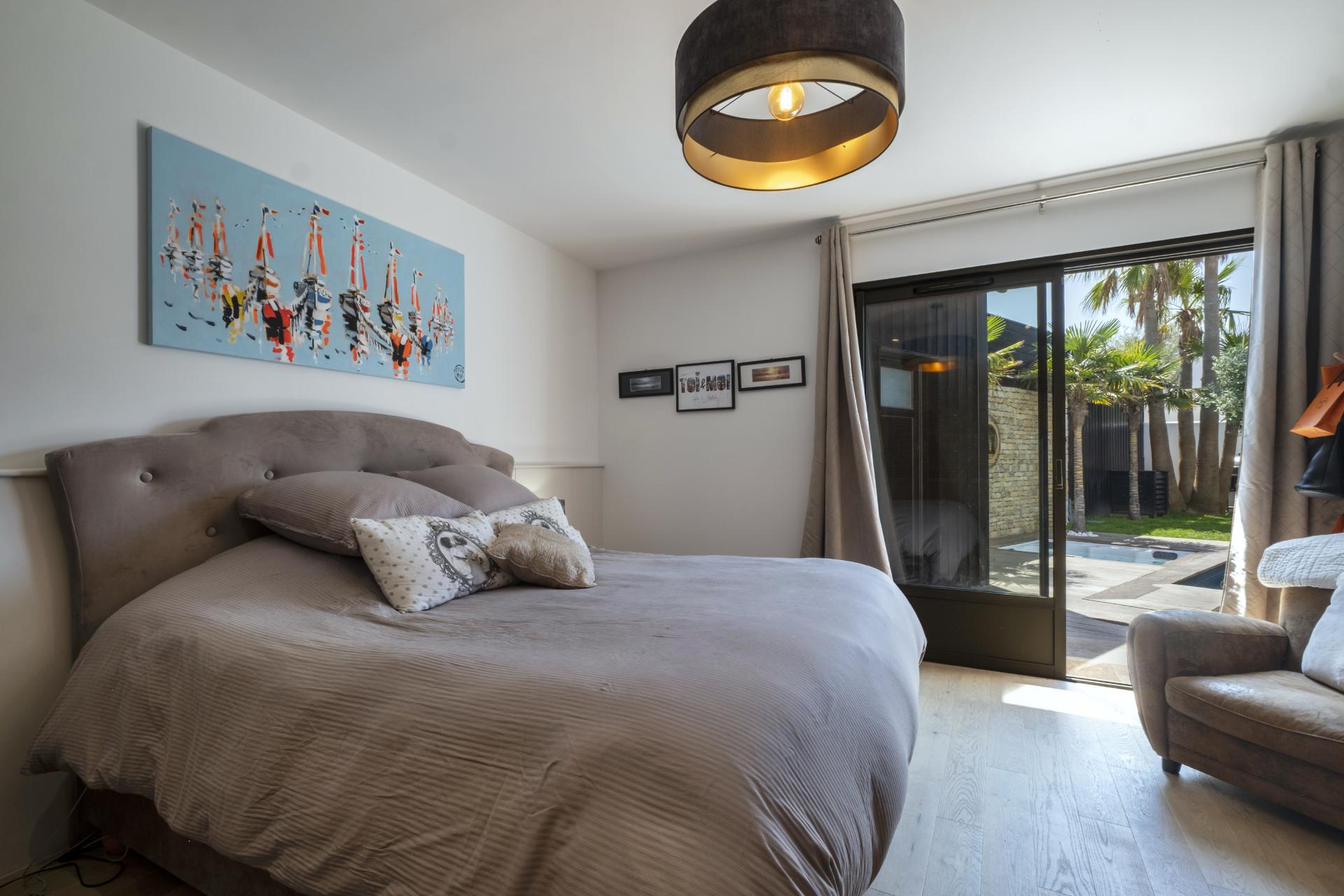 La suite parentale au rez-de-chaussée est un véritable sanctuaire : intimité, confort et praticité réunis. Une deuxième chambre donnant sur la piscine (pouvant être aménagée en bureau) se situe au rez-de-chaussée. À l'étage, 4 chambres supplémentaires et 3 salles d'eau accueillent famille et invités dans des conditions dignes des plus belles demeures privées.